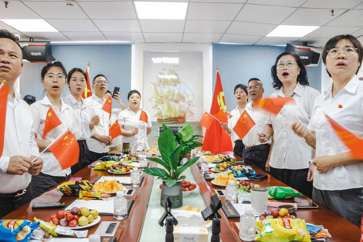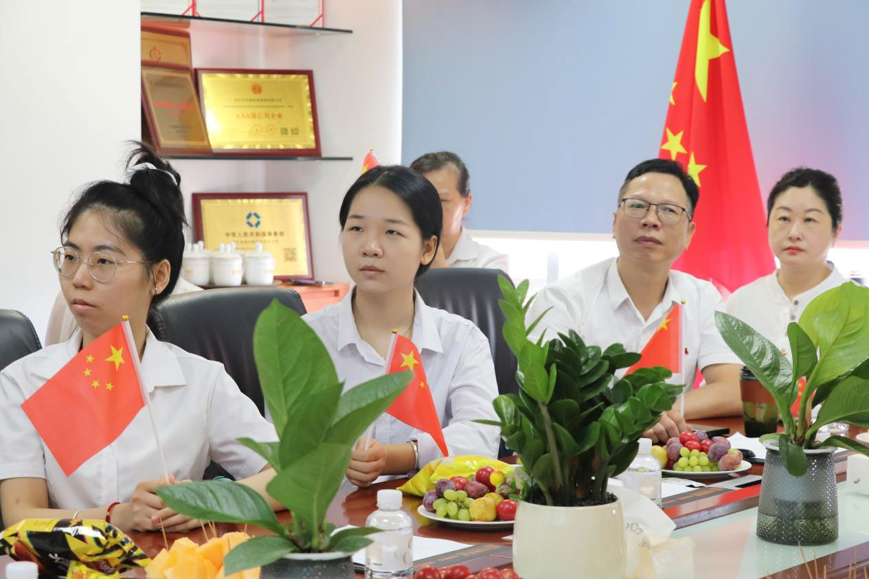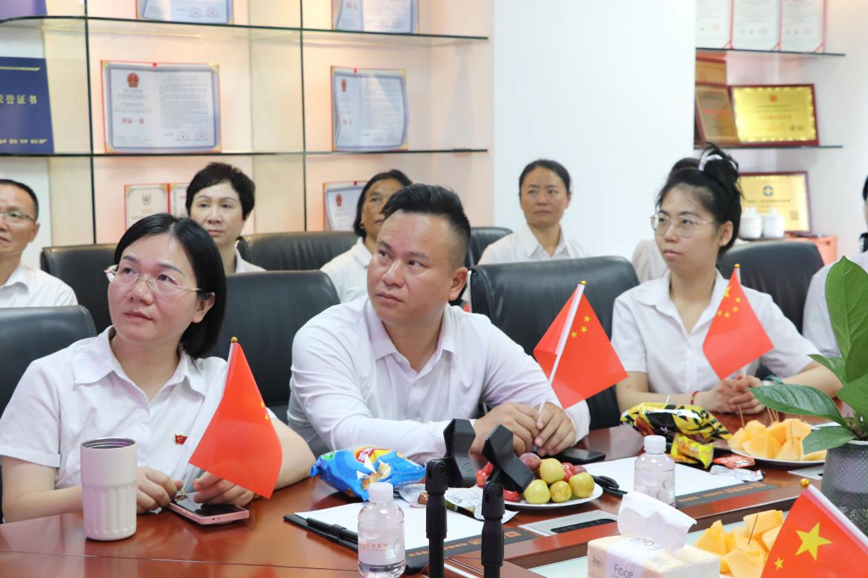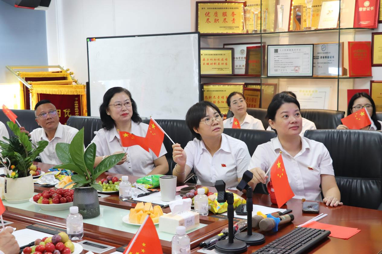 上午9时,随着大会正式开始,会议室内的氛围变得庄严肃穆。大屏幕上,天安门广场上红旗猎猎,礼炮齐鸣,象征着中华民族不屈不挠的精神意志。全体职工肃然起立,齐声高唱国歌,表达对祖国的无限热爱与敬意。