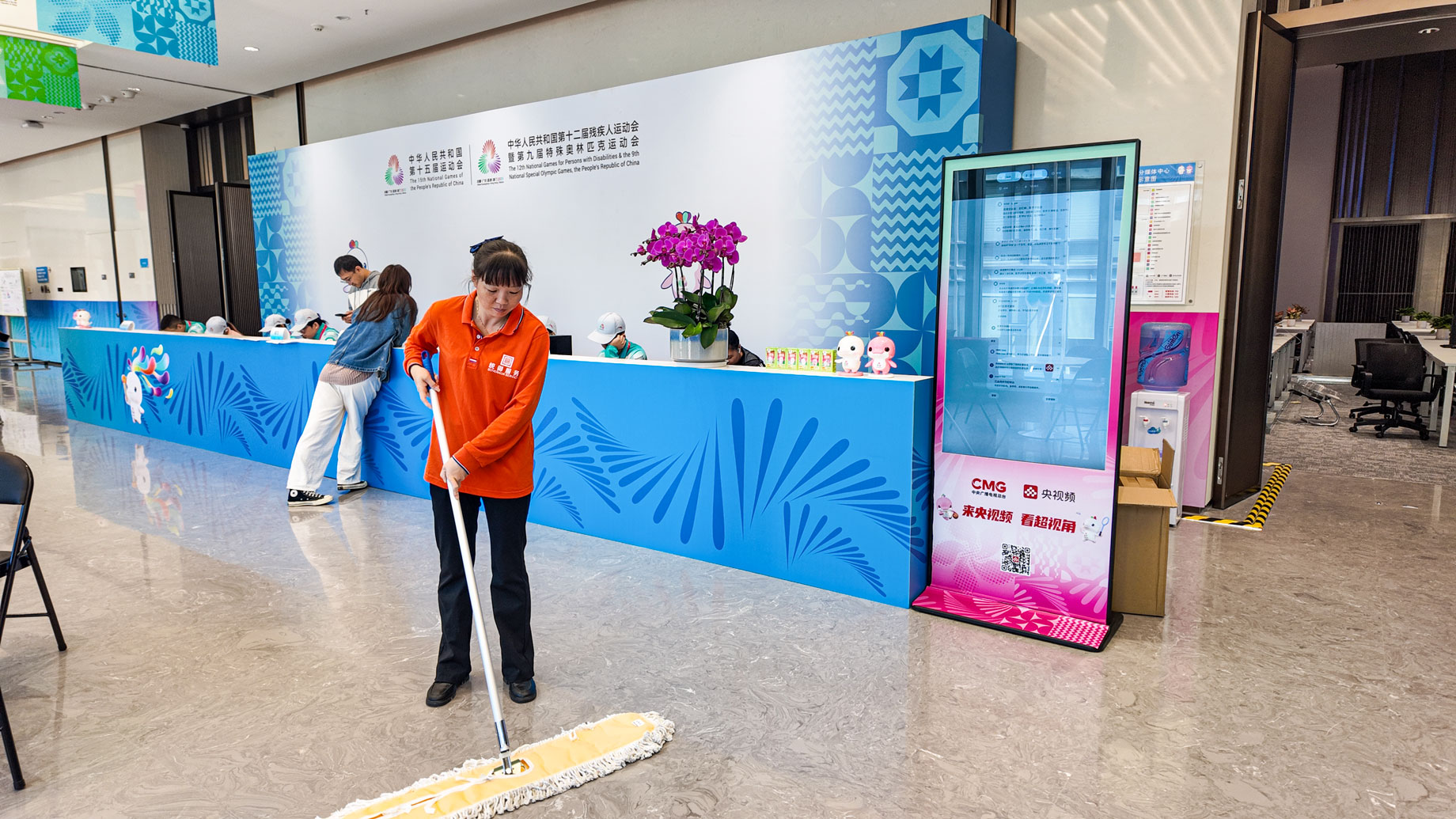 在中央广播电视总台CMG媒体中心与 VIP 观赏区,统御集团更是拿出 “极致标准”,打造后勤保障的 “示范窗口”。作为赛事传播与高端观赛的核心场所,这两个区域的卫生状况直接关系到赛事形象与体验。