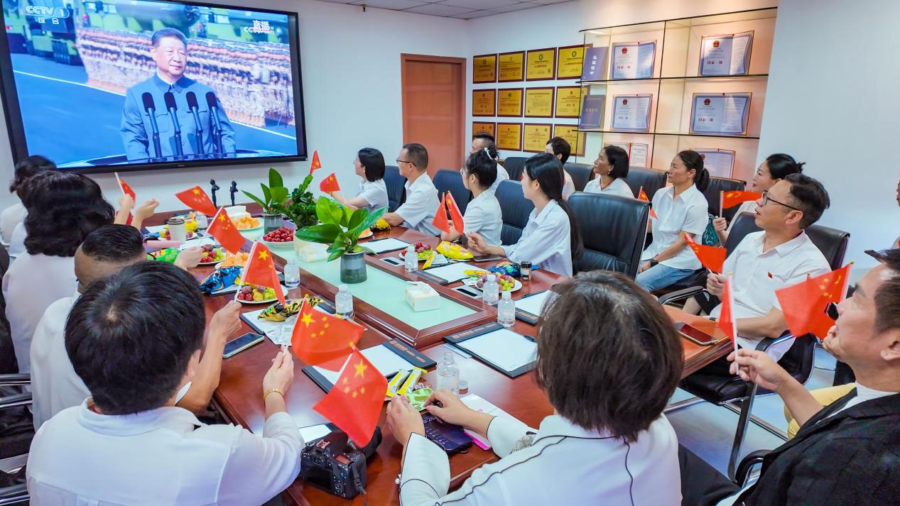 统御集团员工集体观看抗战胜利80周年纪念大会
