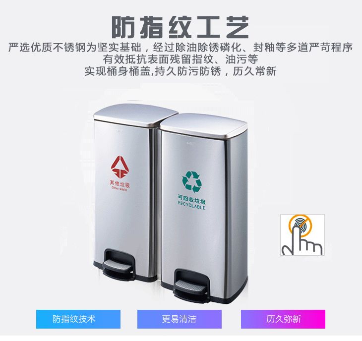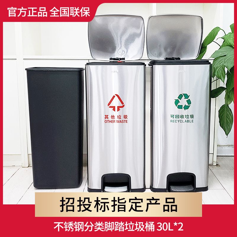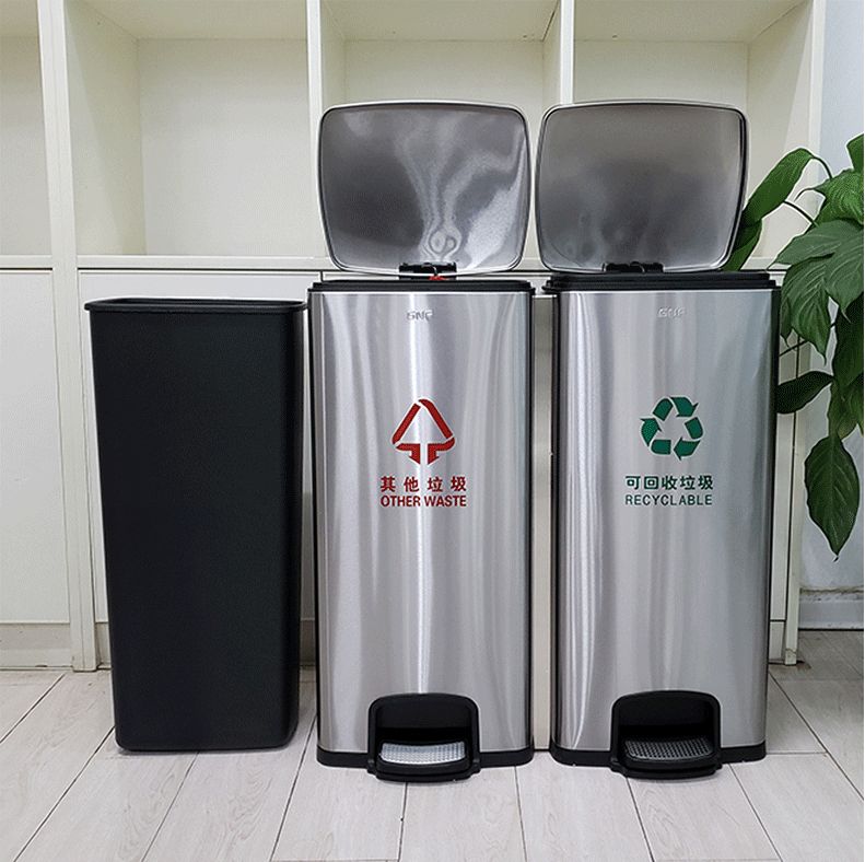 不锈钢脚踏分类垃圾桶