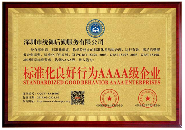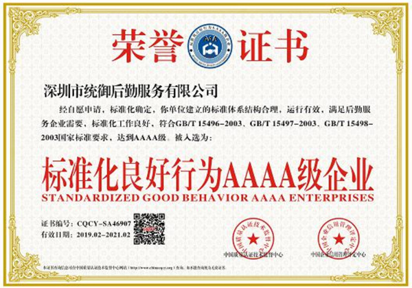 • 《标准化良好行为 AAAA 级企业》