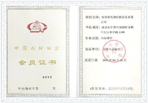• 中国石材协会会员证书