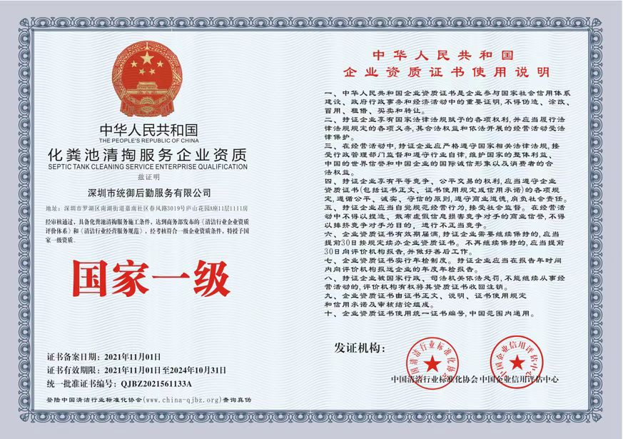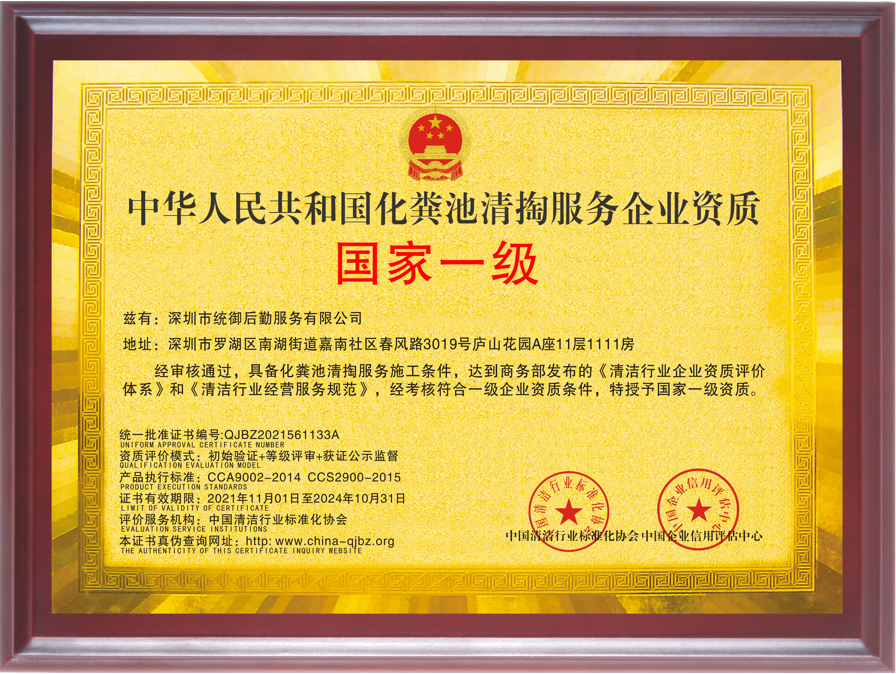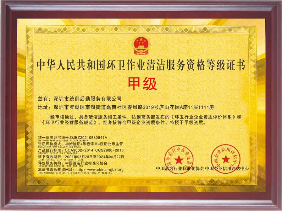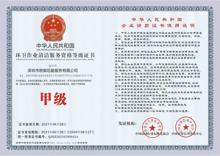 清洁行业国家一级资质