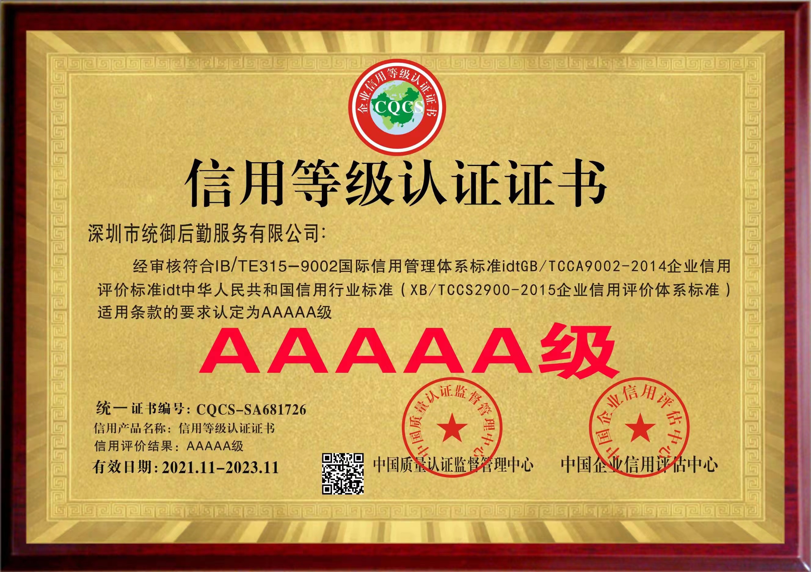 AAAAA级信用等级认证