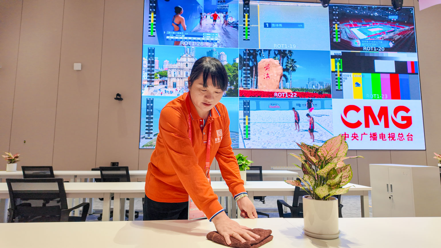 在中央广播电视总台CMG媒体中心与 VIP 观赏区,统御集团更是拿出 “极致标准”,打造后勤保障的 “示范窗口”。作为赛事传播与高端观赛的核心场所,这两个区域的卫生状况直接关系到赛事形象与体验。